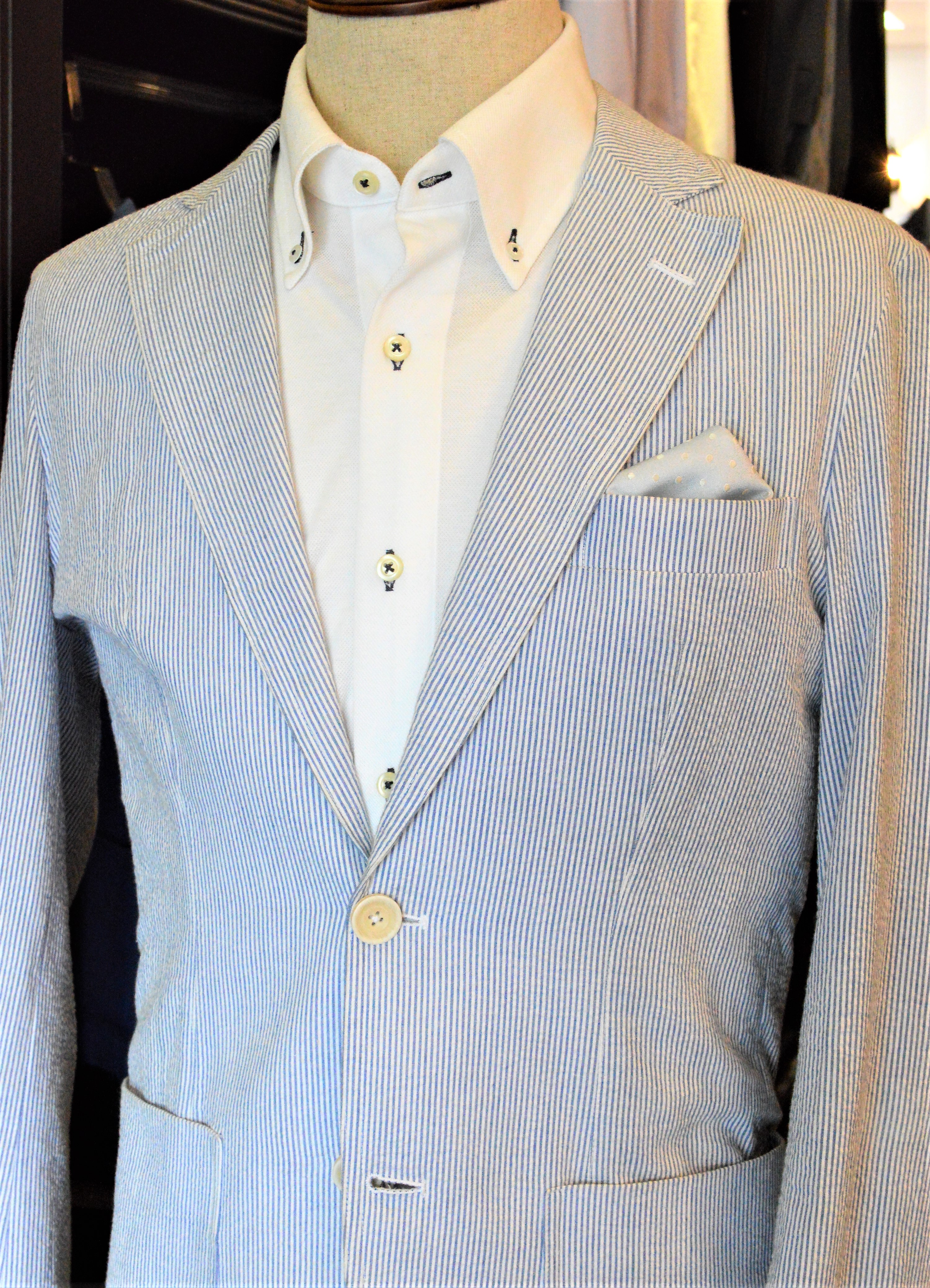 着こなせる麻やシアサッカーの生地に合った襟型をご紹介します。