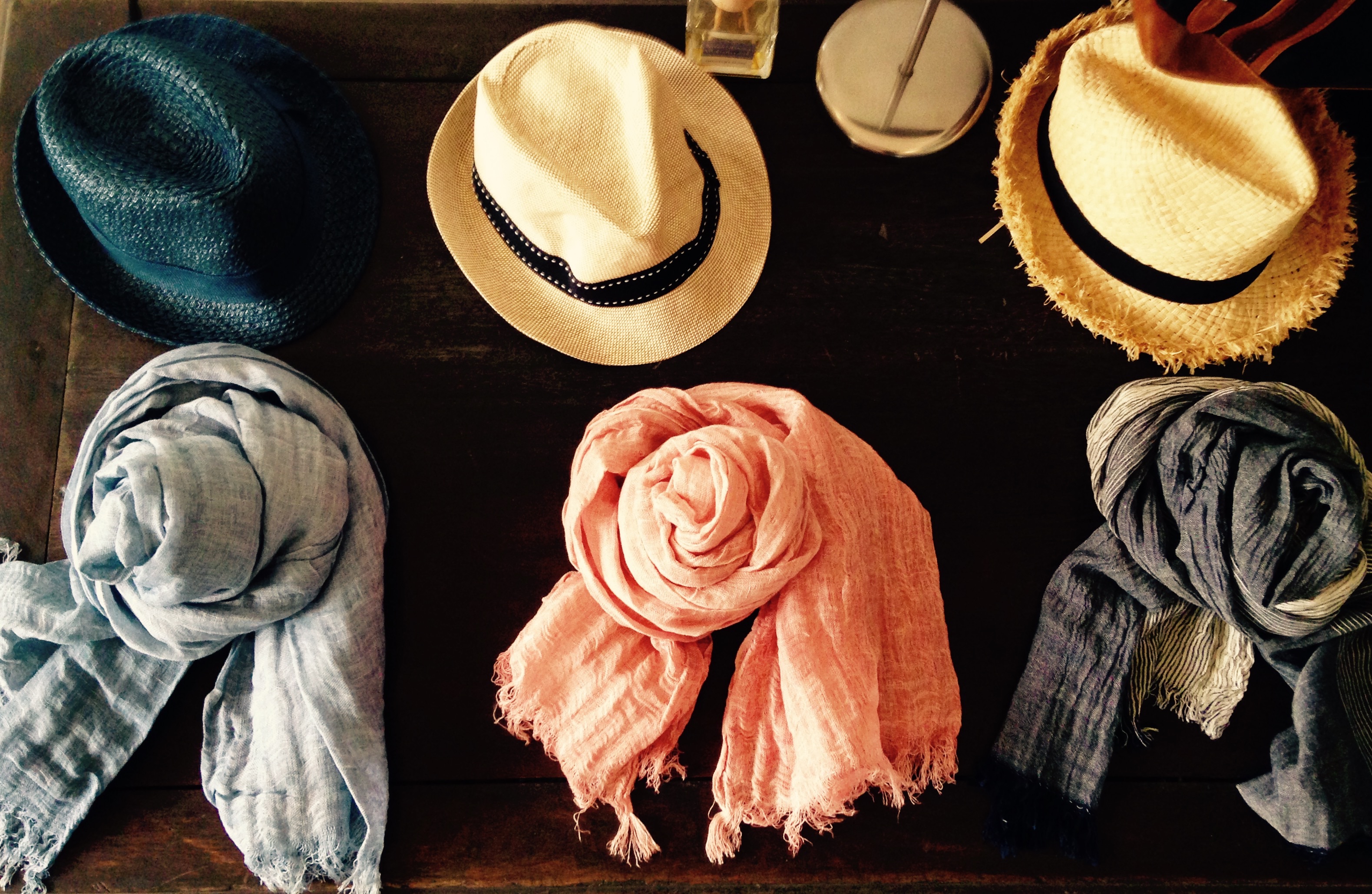 前回ご紹介したコーディネートにストールをプラスするだけで、雰囲気が変わりましたね。