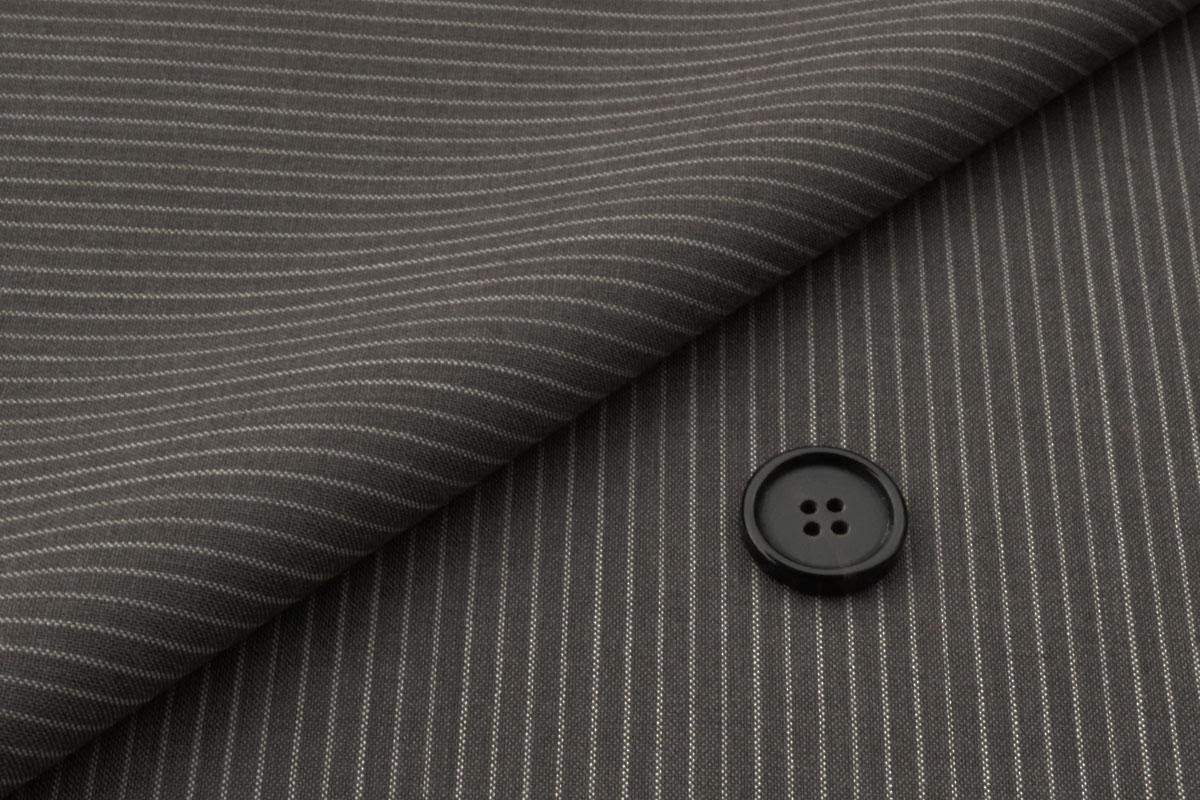(生地の説明セクション) ウールとポリエステルの混紡糸を縦横に使い、 熱加工による上質な光沢感と快適なストレッチ性を兼ね備えた素材。 ポリエステルが入っているので、 〇耐久性が高い! 〇しわになりにくい 〇速乾性が高く、水にぬれても乾くのが早い (色とか種類についての説明セクション) 遠目で見ると無地に見えるほどのシャドーストライプ。 落ち着いた色合いだから、 いろんな場面で活躍すること間違いなし。 化繊のテカリではなく、特殊加工された自然な光沢感からは、 上品ささえ感じます。 (こんな人へおすすめです) ・仕事で頻繁に着用する方 ・艶のあるスーツを求める人 ・ストレッチ機能がついて着心地の良いスーツをお探しの方 ・忙しく、スーツの手入れに時間をかけたくない方 (おすすめコーディネート) ・靴、ベルト:ブラックの一択 ・シャツ:基本的には白シャツか、青シャツが良いでしょう。 ・ネクタイ:レジメンタルタイ・無地と合わせることで、 ビジネスマンらしくクールにまとまります。 ワインレッドの配色や、 チェック柄をアクセントとして楽しむのも◎