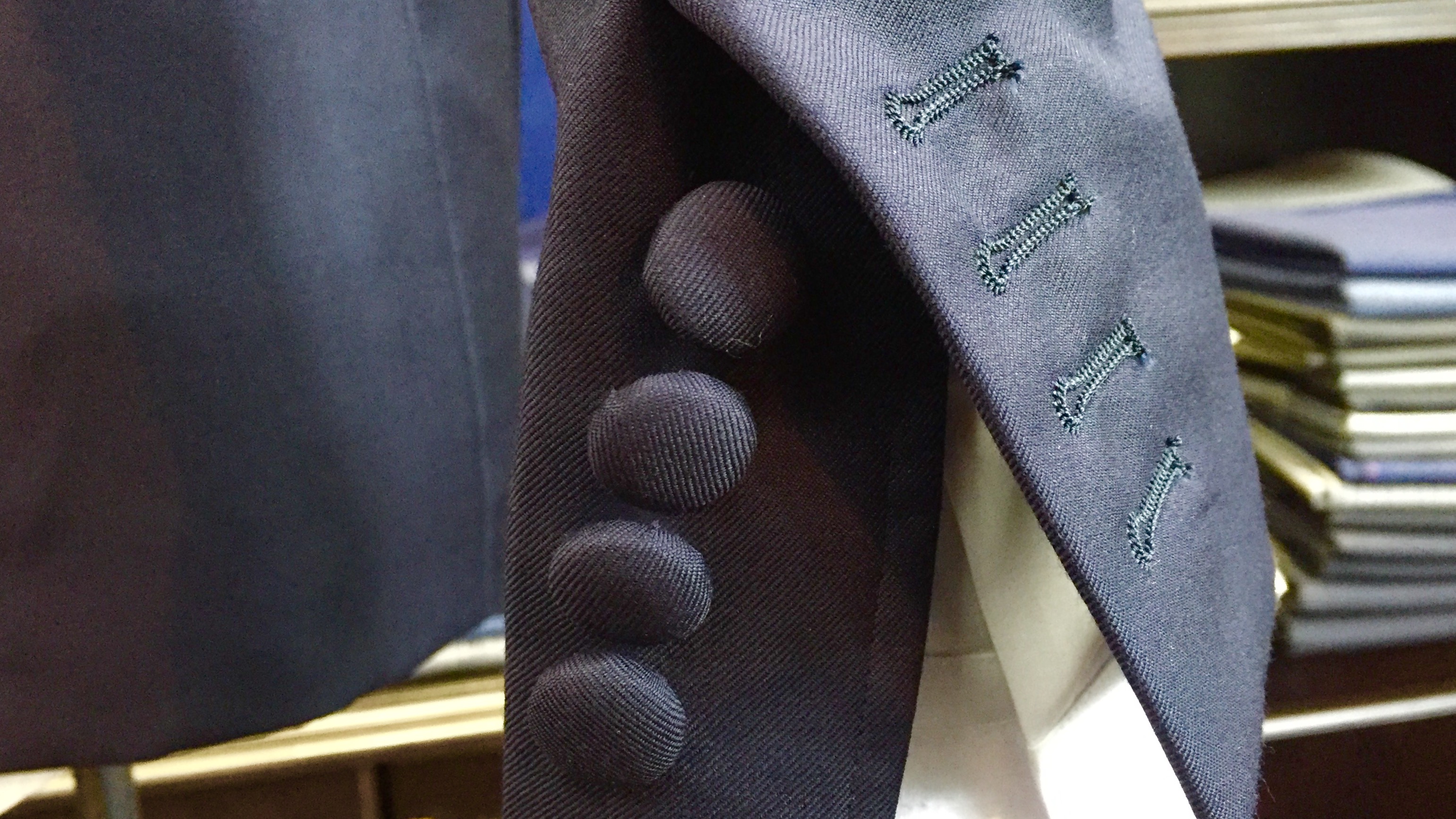 (※当店ではボタンホールは試着後開けます。)